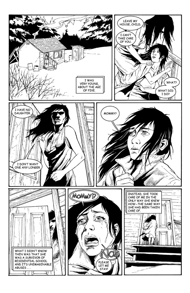 This is a summarize of this story. When Kokum ( protagonist ) was young, her mother told her go out and did not live with her. She went to the forest, and when she was lying in the canoe. New father realized her and she had a new family. One day, she needed to go to the residential school and she must work on the field (hard-working). Many students of this school tried to escape but they could not do it. She missed her family so much, so she affected to do all things well to go out the residential school. She is a survivor in residential school. 149